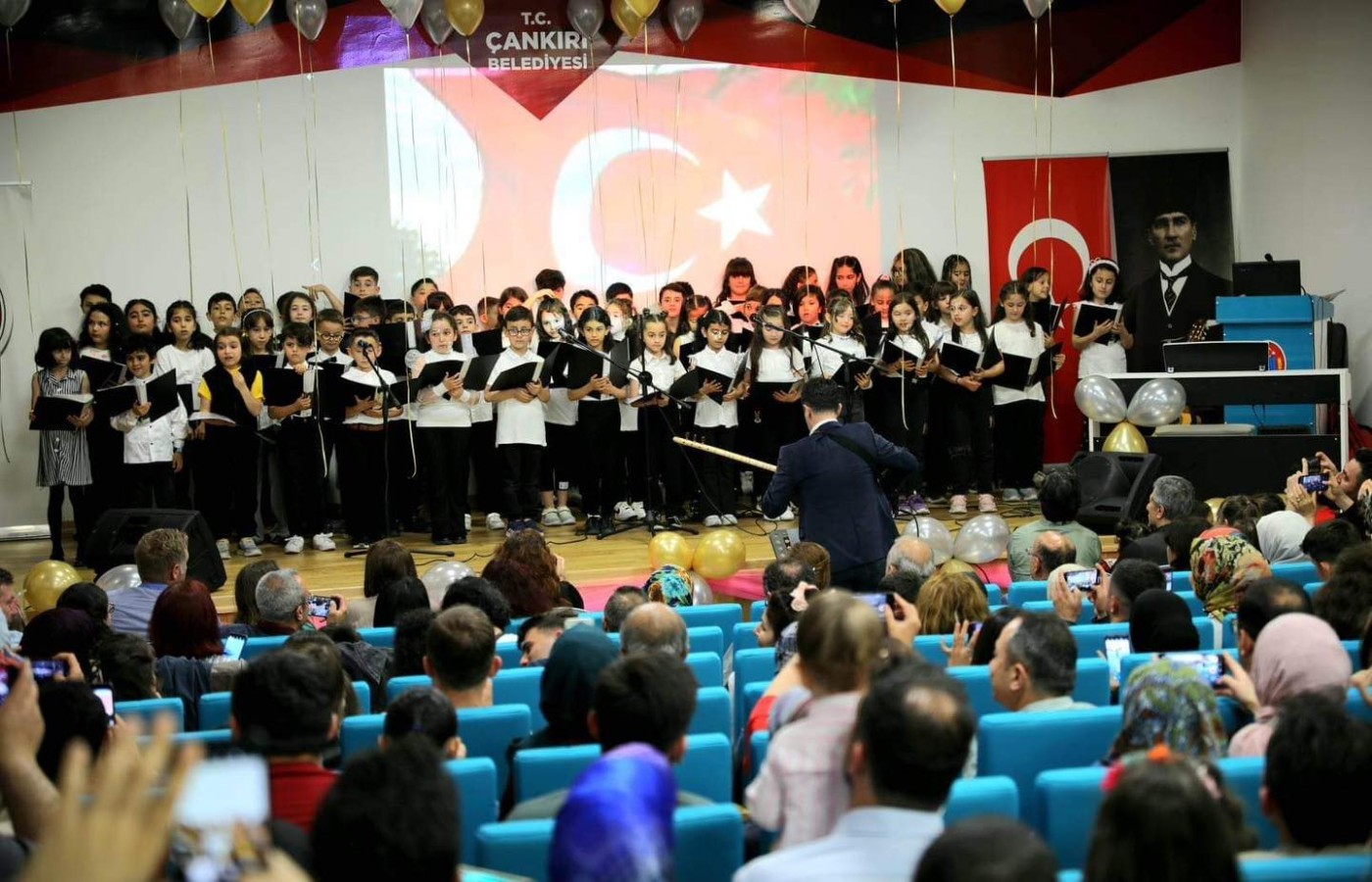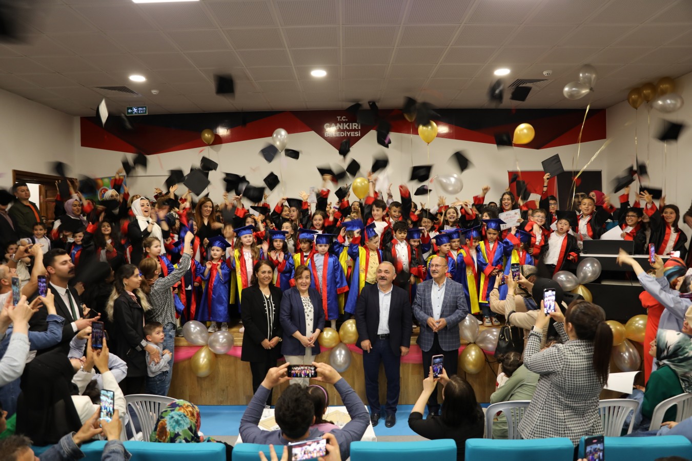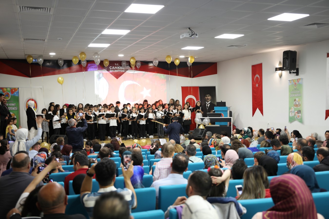 Çankırı Belediyesi Fatih Sultan Mehmet Çocuk Akademisinin yedinci yılında kış atölyelerine katılan öğrenciler, mezuniyet töreninde hem eğlendi hem de eğlendirdi. Bir sezon boyunca farklı atölyelerde öğrendiklerini sergileyen çocukları, Esen çifti de yalnız bırakmadı.