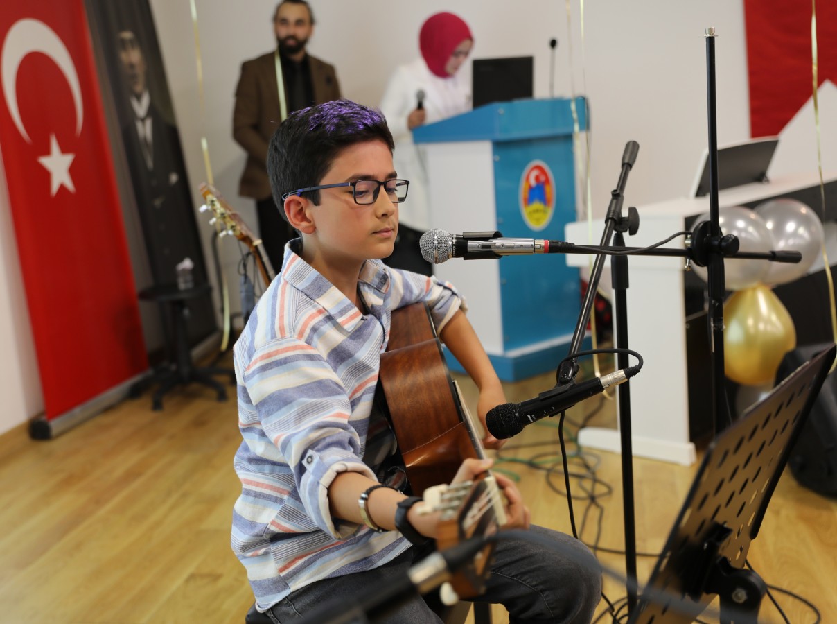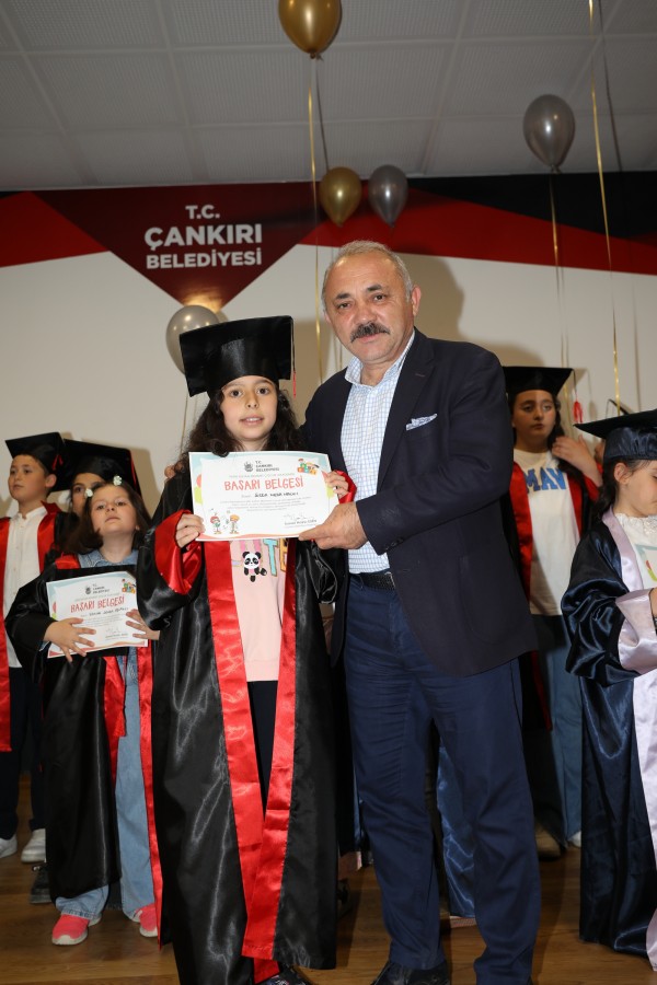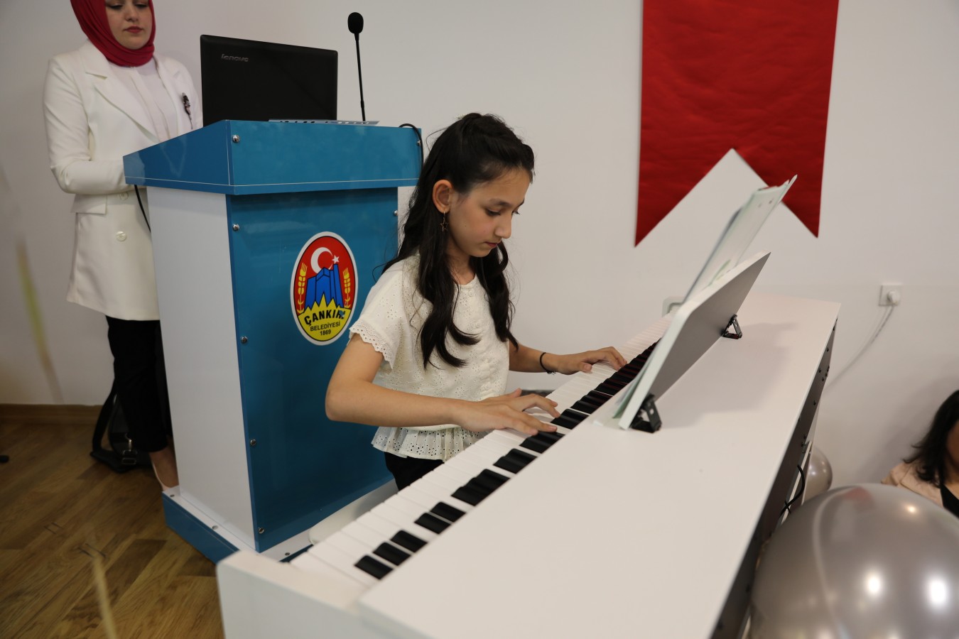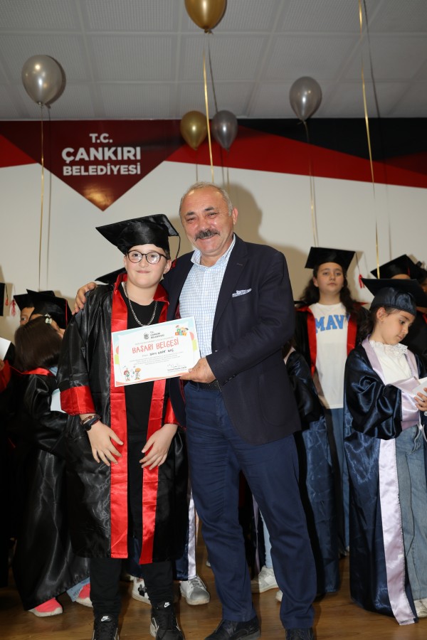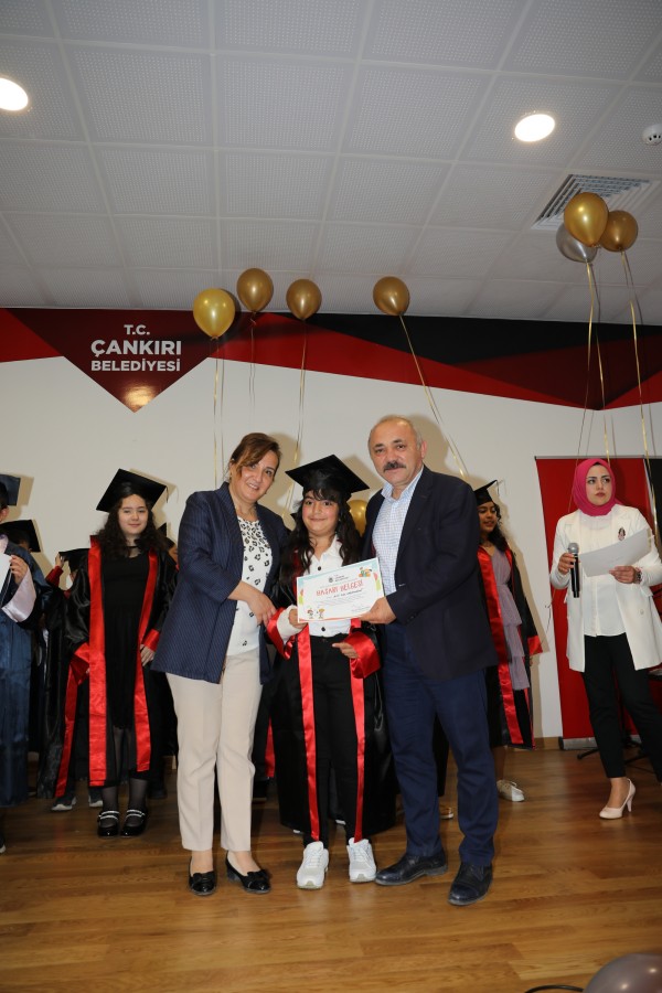 Çankırı Belediyesi Fatih Sultan Mehmet Çocuk Akademisinin yedinci yılında kış atölyelerine katılan öğrenciler, mezuniyet töreninde hem eğlendi hem de eğlendirdi. Bir sezon boyunca farklı atölyelerde öğrendiklerini sergileyen çocukları, Esen çifti de yalnız bırakmadı.