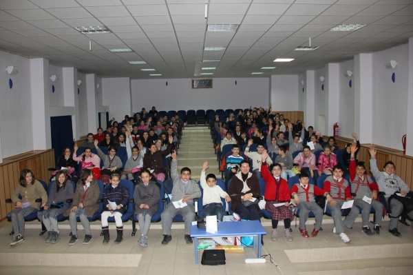 Çok sayıda öğrencinin katıldığı toplantıda, farklı okullardan öğrenci gruplarının birlikte  hazırladıkları projeler açıklandı.