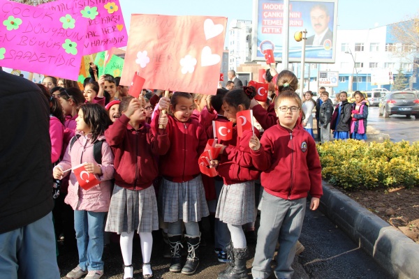 Çocukların şiirler okuduğu etkinlik renkli görüntülere sahne oldu. Çocuklarla yakından ilgilenen Başkan Dinç, yürüyüş süresince onları yalnız bırakmadı. Yapılan etkinliğin sonunda çocuklar kendileri için özgürlük sembolü olan balonları hep birlikte gök yüzüne bıraktılar. Çocuklar Başkan Dinç'in yanına gelerek kendileri için düzenlenen programdan dolayı teşekkür ettiler.
