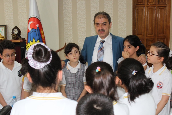 Öğretmenleri Hatice Kaya ile birlikte ilk olarak Belediye Başkanı İrfan Dinç’i makamında ziyaret eden öğrencilere Başkan Dinç tarafından belediye hizmetleri anlatıldı.
