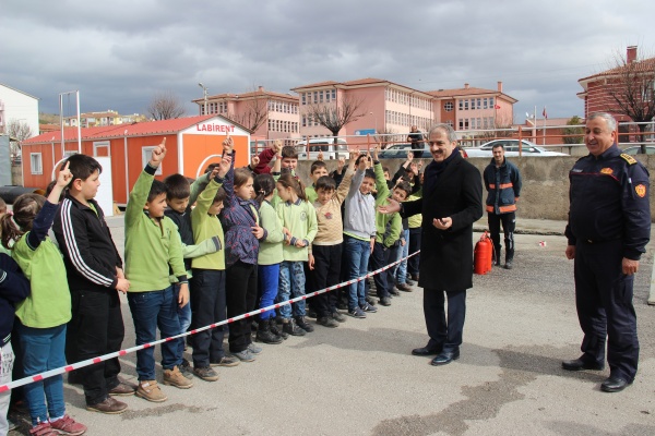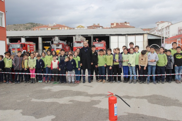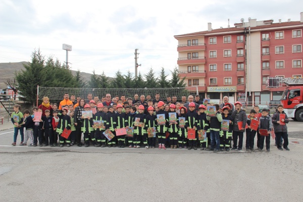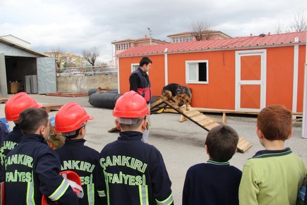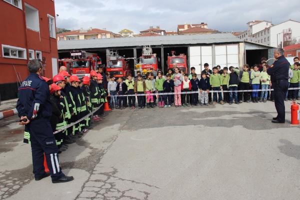 2. 3. ve 4. sınıflardan öğrenci gruplarının katıldığı eğitimde, giydikleri kıyafetlerle itfaiye erlerini aratmayan çocuklara, itfaiye araçları ve özellikleri tanıtılarak, yangınla mücadele ve söndürme tatbikatı yaptırıldı. İtfaiye erleri ile birlikte başarılı bir tatbikat gerçekleştiren öğrencilere, Deprem Haftası nedeniyle İtfaiye Müdürü Ahmet Semerci tarafından sivil savunma ve doğal afet hakkında bilgilendirme yapıldı. Verilen bilgileri dikkatle dinleyen öğrenciler, sorulan sorulara da hep bir ağızdan yanıt verdiler. Daha sonra öğrenciler itfaiye aracına binerek, yangın merdiveni ile yangına nasıl müdahale edildiğinin canlandırmasını yaptılar. Eğitimin vazgeçilmez parçası haline gelen, K9 cinsi arama kurtarma köpeği, yine öğrencilerin büyük ilgisini çekti. Çocuklar, kurt köpeğinin yaptığı gösterileri hayranlıkla izlediler.