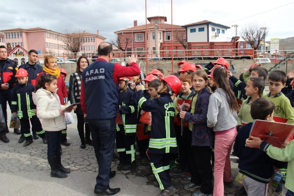 Çankırı Belediyesi'nin çocuklara yangın eğitimi vermek ve çocukları doğal afetlere karşı daima hazır tutmak amacıyla verdiği eğitimlere bir yenisi daha eklendi. Eğitim kapsamında Dr. Refik Saydam İlkokulu öğrencilerinden oluşan gruba Çankırı İtfaiyesi'nde uygulamalı olarak yangın tatbikatı yaptırılırken, yetkililer tarafından doğal afet ve sivil savunma konularında da bilgi verildi.