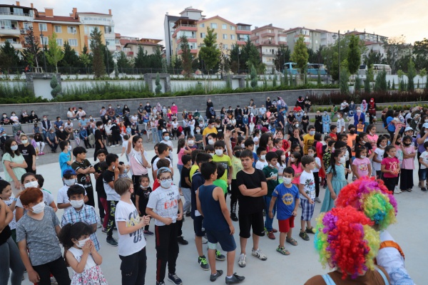 Belediye Başkanı İsmail Hakkı Esen, eşi Betül Esen ile birlikte Devlet Bahçeli Parkı ve TCDD Açık Hava Müzesi’nde Çankırı’da Korumaya ve Bakıma Muhtaç Çocuk, Engelli, Yaşlı ve Kadınları Koruma Derneği tarafından gerçekleştirilen Çocuk Şöleni’ne katıldı. Palyaçolar eşliğinde birçok çocuk oyununun oynandığı etkinlik, pandemi sürecini evde geçirmek zorunda kalan çocuklar ve ailelerine de moral oldu. Çocuklara pamuk şeker ve sürpriz hediyeler veren Başkan Esen, vatandaşlar ve çocuklar ile açık alanda bir araya gelip zaman geçirmekten mutluluk duyduklarını söyledi. Esen, “Pandemi sürecinde, parklarımızın yeniden çocuk cıvıltıları ile dolması temennisinde bulunmuştuk. Bugün bir nebze de olsa bunu gerçekleştirdik. Devlet Bahçeli Parkımız, özellikle salgın sürecinde vatandaşlarımız için güzel bir alternatif oluşturdu. İnşallah bu sıkıntılı süreçler tamamen bittiğinde daha birçok etkinliğe ev sahipliği yapacak.” dedi.