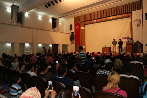 Etkinlikte konuşan Belediye Başkanı İrfan Dinç, güçlü ve büyük bir devlet ve millet olmanın gereğinin insanlık yolunda gösterilen gayretten geçtiğini belirtti. Dinç, “Ülkemizin mülteci kardeşlerimize göstermiş olduğu hassasiyeti ve çabayı biz de Çankırı Belediyesi olarak şehrimizde yaşayan mülteci kardeşlerimize göstermekteyiz. Mazluma ve mağdura kucak açan, elindekini paylaşan, yardımlaşan ve hatta kardeşlik eden bir milletin torunlarıyız. Manevi bağlarla örülmüş değerlerimizi ayakta ve diri tutmak için elimizden gelen gayreti gösteriyoruz. Bizler de yerel yönetim olarak; kardeşlerimizin ihtiyaçlarını belirlemek üzere görevlendirdiğimiz Sosyal Yardımlaşma Merkezimiz ile haneleri tek tek ziyaret ederek yardımların yerine ulaşmalarını sağladık. Eğitim, sağlık, gıda, eşya, giyim ve diğer ihtiyaçlarını karşılayarak yaşam standartlarınızı iyileştirmek ve yükseltmek için gönül kapılarımızı sonuna kadar açtık. Bizim gönüllerimizde sevgiye, kardeşliğe sınır çizilmez. Çok ağır koşullar sebebi ile memleketlerinden ayrılmak zorunda kalan siz kardeşlerimizin yanında olmaya ve ruhunuzda açılan yaraları sarmaya devam edeceğiz.” ifadelerini kullandı. Dinç’in konuşması tercümanlar yardımı ile mülteci aileler için kendi dillerinde çeviri yapıldı. Etkinlikte mülteci vatandaşların ve özellikle çocukların Başkan Dinç’e duyduğu sevgi dikkatlerden kaçmadı. Program sonunda mültecilere Türk Bayrağı hediye edildi.