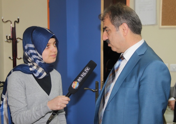 Törenden sonra açılışları gerçekleştiren Dinç ile okul öğrencileri temsili bir röportaj yaptılar.