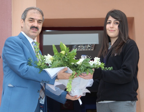 Okul Müdürü Mustafa Turan, Başkan Dinç'e yaptığı çalışmalar ve eğitime katkılarından dolayı teşekkür ederken, okul öğrencileri tarafından da çiçek takdim edildi.