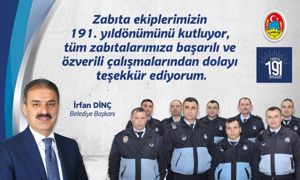 Halka sürekli hizmet anlayışı ile hareket ettiklerini belirten Başkan Dinç, “Sürekli gelişen bir kent olma yolunda Çankırı’nın aydınlık yarınları için her vatandaşımızın bu zincirin önemli bir halkası olmasını arzu etmekteyiz. Çalışmalarının merkezini oluşturan halk sağlığı ve huzuru için sokakta, trafikte, iş yerlerinde, gıda sektörlerinde denetimlerini aralıksız sürdüren ekiplerimizin en büyük destekçileri yine halkımız olacaktır. Esnafımızın ve vatandaşımızın zabıta ekiplerimize yardımcı ve destek olmaları memleketimizin olumlu hal ve gidişini daha da güzelleştirecektir.  Bu duygu ve düşüncelerle; zabıta ekiplerimizin 191. yıldönümünü gönülden kutluyor, mesai gözetmeksizin çalışan tüm zabıtalarımıza başarılı ve özverili çalışmalarından dolayı teşekkür ediyorum.” dedi.