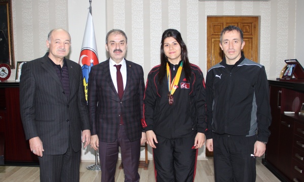 Dinç, dünyada en iyi ilk 9 kadın boksörden biri olan Bozduman’ı makamında ağırladı. Dünya ülkelerinin önünde Türk Bayrağını göndere çeken milli sporcumuzu başarılarından dolayı tebrik eden Dinç, Bozduman’ı altınla ödüllendirdi.
