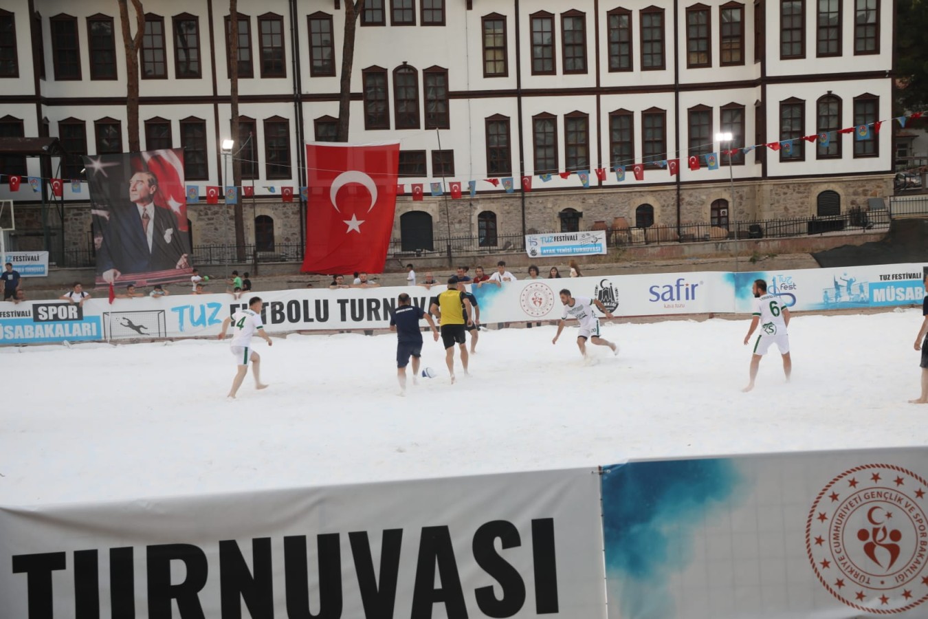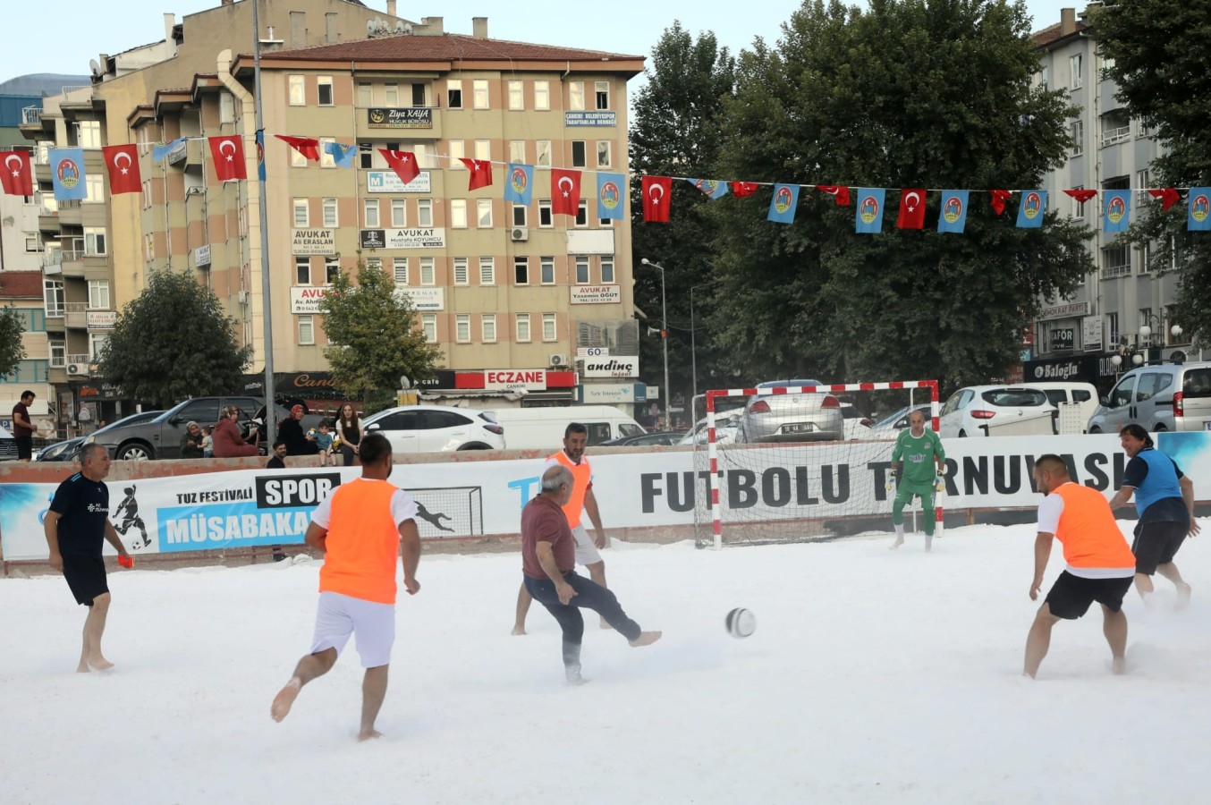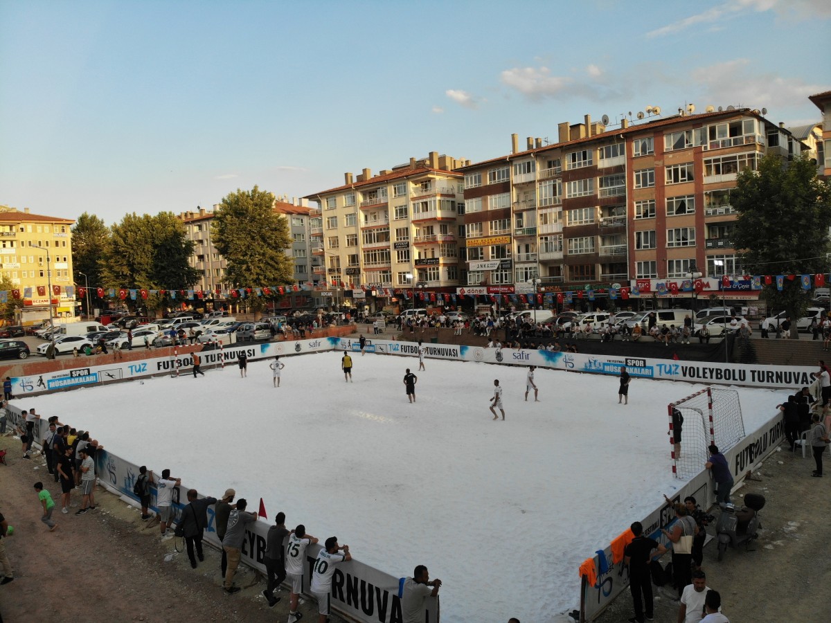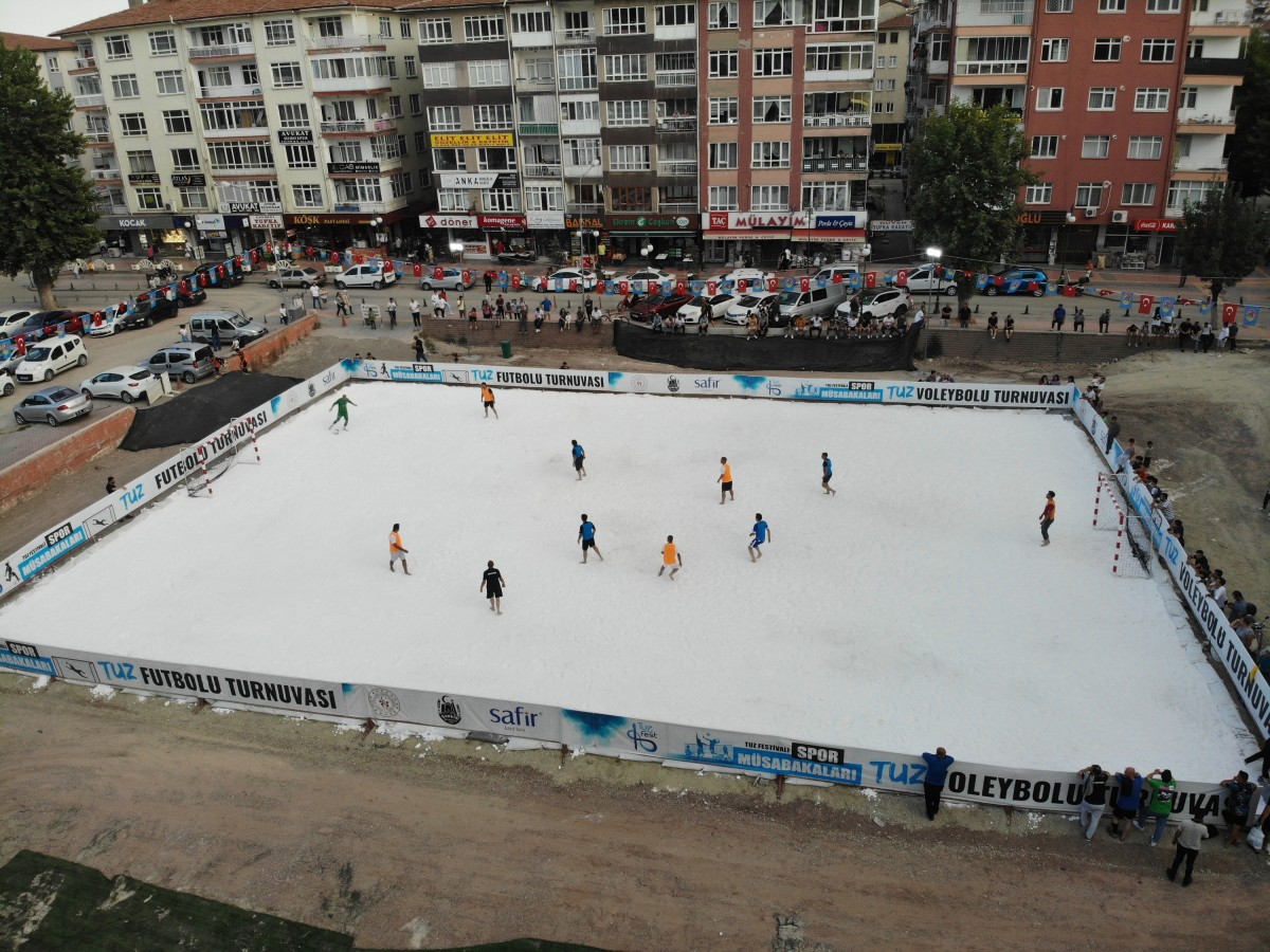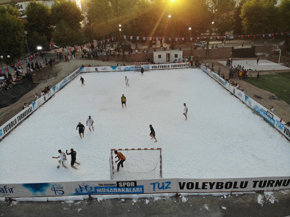 Kent Meydanı alanında hazırlanan tuzdan sahada müsabakaların ilk başlangıç düdüğü futbol karşılaşmaları için çaldı. Geçtiğimiz yıl Dünyada ilk defa tuz üzerinde oynanan müsabakalara katılan futbolcular, bu yıl da heyecanla bekledikleri tuz müsabakalarında çıplak ayak ile kıyasıya mücadele vermeye başladı. Tuzdan sahada manevra yapmakta zorlanan sporcular, adeta tuzu dumana kattı. İlk resmi karşılaşma Artı Mühendislik ile Korgun Belediyespor arasında gerçekleşti. Tuz üzerinde çıplak ayakla oynanan futbol maçındaki kıyasıya mücadele, seyircileri de heyecanlandırdı. İlk maçın galibi 3-1’lik skor ile Korgun Belediyespor oldu.