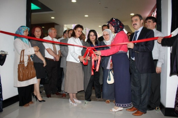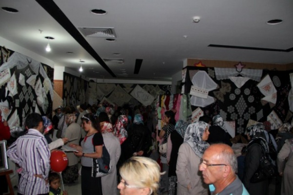 Protokol ve vatandaşlar, 2011-2012 eğitim öğretim yılında 18 farklı dalda eğitim alan 394 kursiyerin, el emeği göz nuru eserlerinin sergilendiği standları ilgiyle inceleyerek ürünlerle ilgili bilgi aldılar. Birbirinden güzel el işleri ve tabloların görücüye çıktığı sergi, konuklardan büyük beğeni topladı.