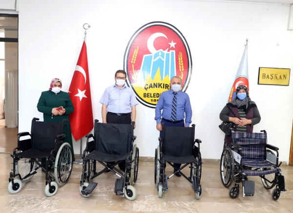 Pandemi sürecinde sosyal belediyecilik faaliyetlerini vatandaşların ihtiyaçları üzerine yoğunlaştıran Çankırı Belediyesi, engeli olan vatandaşlara yönelik çalışmalarına devam ediyor. Vatandaşların destek vererek bağışladığı tekerlekli sandalyeler, Belediye aracılığı ile bedensel engeli bulunan vatandaşlara ulaştırılıyor. Son olarak engeli olan dört vatandaşın tekerlekli sandalye talebini yerine getiren Belediye Başkanı İsmail Hakkı Esen, duyarlılıklarından dolayı Çankırı halkına teşekkür etti.