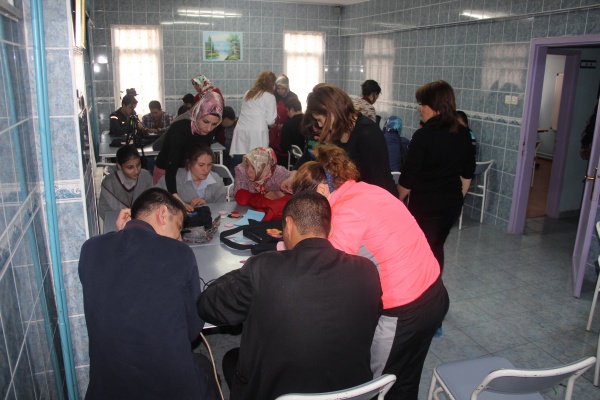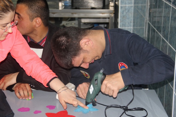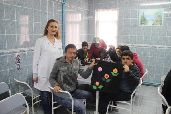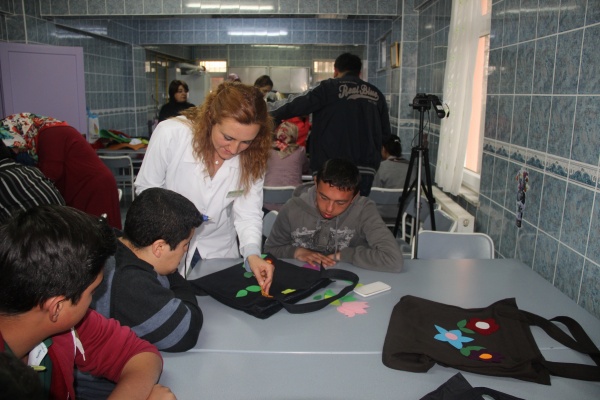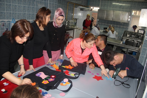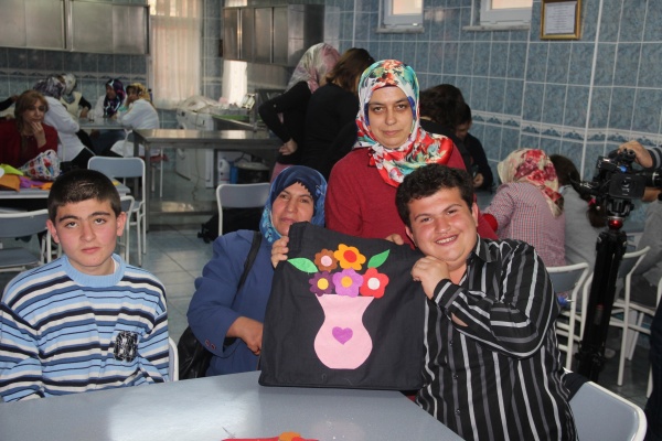 Proje kapsamında lise öğrencileri, öğretmenler ve belediye çalışanları Vali Ayhan Çevik Özel Eğitim Uygulama Merkezi'ndeki engelli öğrenciler ile çanta yaptı.