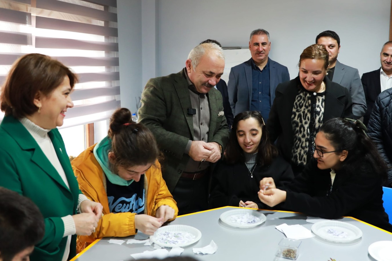 Kutu oyunlarını başarılı bir şekilde tamamlayan çocuklar, ritim ve tuz seramik çalışmaları da gerçekleştirdi. Müzik atölyesinde vurmalı çalgılarla şarkıya ritim tutan öğrencilere Başkan Esen de eşlik etti.