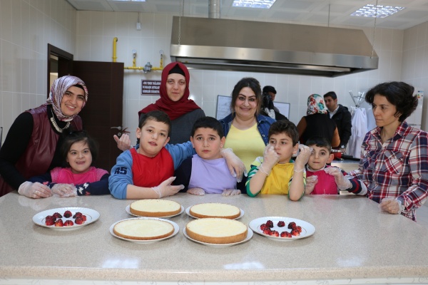 Çankırı Belediyesi Kadın Eğitim Kültür Merkezinde verilen pastacılık dersine öğretmenleri ile birlikte katılan özel öğrenciler, pasta yapmanın keyfine vardı. Aşçı önlükleri giyen çocuklar, susamlı simit ve yaş pasta yaparken hem eğlendi hem de büyük heyecan yaşadı. Özel öğrenciler, sevgilerini katarak yaptıkları pasta ile paylaşmanın engel tanımadığını bir kez daha gösterdi. Pastacılık alanında hünerlerini sergileyen engelli çocukların kendilerine olan öz güvenleri ve pasta yapımına gösterdikleri itina görülmeye değerdi.