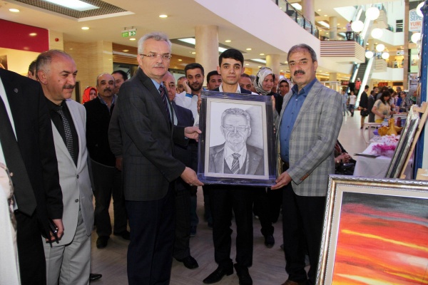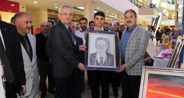 Belediye Engelliler Koordinasyon Merkezi Üyesi Eray Karaca tarafından çizilen Vali Vahdettin Özcan’ın karakalem portresi sanatseverlerin beğenisini topladı. Daha önce Belediye Başkanı İrfan Dinç’in de portresini yaparak kendisine hediye eden özel öğrenci, çizdiği portreyi Vali Özcan’a hediye etti. Sergide; tabloların yanı sıra engelli öğrenciler tarafından yapılan el emeği ürünler de sergilendi.