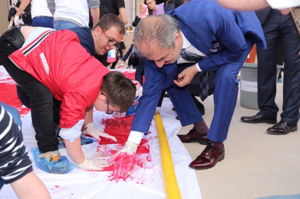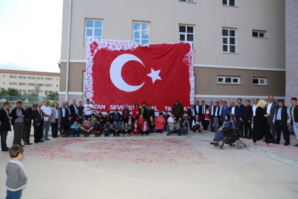 Engelli vatandaşlara yönelik moral ve motivasyon etkinlikleri düzenleyen Çankırı Belediyesi, bu yıl da geleneği bozmadı. Öncelikle boyama şenliğinde bir araya gelen engelli çocuklar, Selahattin İnal Güzel Sanatlar Lisesi okul bahçesine serilen büyük bezin üzerini elleri ile boyayarak hünerlerini gösterdi. Protokol ile birlikte etkinliğe katılan Belediye Başkanı İrfan Dinç, kolları sıvadı, ellerini kırmızı boyaya batırdı ve özel çocukların boyama etkinliğine yardım etti. Al renge boyanan bez, okul duvarına asıldıktan sonra etkinliği izleyenlerce alkışlandı. Türk bayraklı bezin üzerindeki “Vatan Sevgisi Engel Tanımaz” yazısı katılımcılardan tam not aldı.