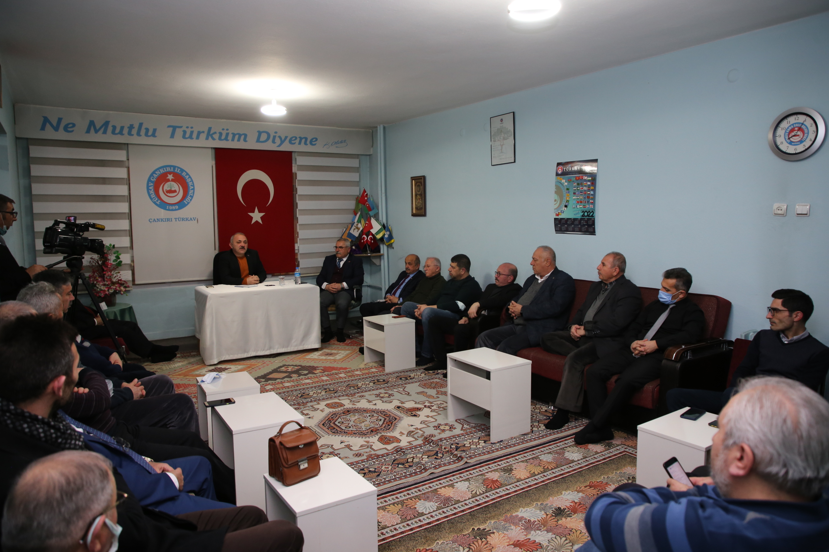 TÜRKAV Çankırı Şubesince düzenlenen “Salı Sohbetleri” programının 2022 yılı ikinci konuğu Belediye Başkanı İsmail Hakkı Esen oldu. TÜRKAV Yönetim Kurulu ile MHP İL Teşkilatı üyelerinin yer aldığı ve basına açık olarak gerçekleştirilen sohbette Esen’in hayat hikâyesinden, Çankırı ve Çankırı halkına dair her şey tüm samimiyeti ile konuşuldu. Çankırı’nın yaşam standartı yüksek bir şehir haline getirilmesindeki ilk hedefin öncelikle göçü tersine çevirmenin olduğunu belirten Esen, şehrin turizm ve ekonomi dinamiklerini tetikleme hedeflerinin sadece tanıtım merkezli olmadığını, insanların Çankırı’da yaşama isteklerini arttırarak tersine göç gerçekleştirmek istediklerini ifade etti.