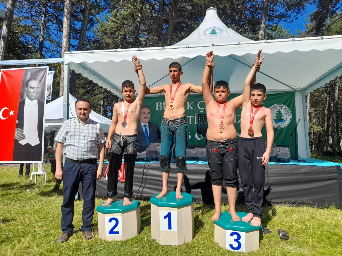 Çankırı Belediye Gençlik Spor Kulübünün bol madalyalı güreşçisi Kadir Güleşen, bir kez daha şampiyonluk ipini göğüsledi. Bu yıl 44.sü düzenlenen Ankara Geleneksel Çamlıdere Yağlı Güreş Müsabakaları’nda Başaltı Boy’da yarışan Kadir Güleşen, rakiplerini geride bırakarak şampiyon oldu. Kulüp sporcularından Niyaz Efe Çağırtkan Teşvik Boy’da ikinci, Ertuğ Özler ise Minik Boy’da üçüncü olarak grup müsabakalarını tamamladı.