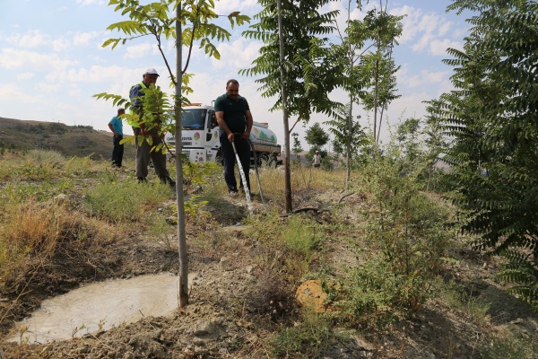 Çankırı’nın Esentepe yamaçlarındaki ağaçlar çapalanıp sulanıyor. Belediye ekipleri, ağaçların yaz mevsiminin aşırı sıcaklarında artan su ihtiyacını karşılamak için sulama çalışması başlattı. Ağaçların kurumasını önlemek amacı ile harekete geçen Çankırı Belediyesi, 300 bin metrekarelik alanda bulunan 30 bin aylantus ve 20 bin akasya ağacı olmak üzere 50 bin adet ağacın çapalama ve sulama çalışmalarını yürütüyor.