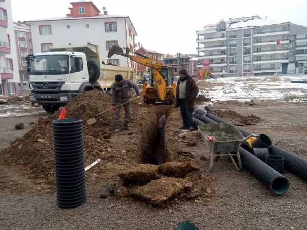Feslikan Bölgesinde yeni yerleşim alanlarının şekillenmesi ile birlikte ekipler, teknik altyapı çalışmalarına ağırlık verdi. Fen İşleri Müdürlüğü ekiplerinin asfalt çalışmalarından önce altyapı çalışmalarının tamamlanması için Su ve Kanalizasyon Müdürlüğü ekipleri 150–200–300 mm çapında koruge borular ile abone bağlantıları yaparak parsel altyapı çalışmalarını sürdürüyor. Feslikan Bölgesinde imara hazır 55 adet parselin su, kanalizasyon ve yağmur suyu bağlantıları da çekilerek üst yapı çalışmalarına hazır hale getirilecek.