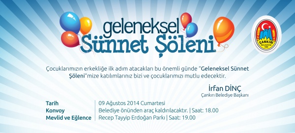 Belediye tarafından durumu iyi olmayan ailelerin çocuklarına yönelik bu yıl da renkli ve eğlenceli bir şölen düzenlenecek. Çocukların erkekliğe ilk adımlarını atacakları bu organizasyona bütün halkımız davetlidir.