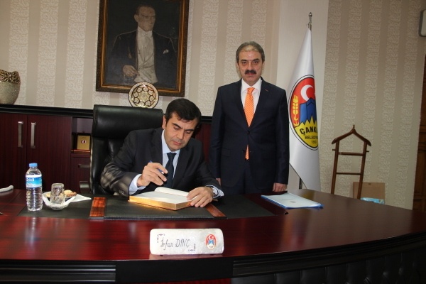 Oldukça olumlu bir havada gerçekleşen ziyarette, “Çankırımıza şeref verdiniz” diyerek Bakan Yardımcısı Tekin’i karşılayan Belediye Başkanı İrfan Dinç, sözlerini “Yoğun programınız içinde bize de zaman ayırdığınız için teşekkür ederiz. Çankırı Belediyesi olarak kentin gereksinimleri ile ilgili çalışmalar yaparken bir yandan da tarihi dokuyu korumaya önem veriyoruz. Modern terminalimiz ve alışveriş merkezimizle, şehrimize yeni bir vizyon kazandırdık. AVM ile üniversiteli gençlerimizin sosyal ihtiyaçlarını karşıladık. Çankırı Kalesi’ni mezbele görünümünden kurtardık. Birçok çalışmalar yaptık ama özellikle restorasyonunu yaptırdığımız Tarihi Çamaşırhane, Buğday Pazarı Medresesi ve Çivitcioğlu Medresesi ile Çankırımızın tarihine ve kültürüne sahip çıktık. Dr. Rıfkı Kamil Urga Çankırı Araştırmaları Merkezini kurarak Türkiye’ye örnek bir çalışma yaptık. Şehrimizin arşivlerini, orijinal vesikaları bu merkezimizde topladık. Bu çalışmalar sadece yerel tarihimize değil, ülkemizin genel tarihine de ışık tutacak çalışmalar. Bu çalışmalar, aralarında üniversite hocalarımızın da bulunduğu yönetim kurulu tarafından yürütülüyor. Yüzün üzerinde bilim adamı bize destek veriyor.