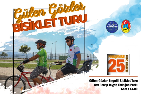 Çankırı Belediyesi, Çankırı Bisiklet Kulübü iş birliği ile dikkat çekici bir etkinliğe hazırlanıyor. 25 Temmuz 2019 Perşembe günü saat 14.00’te Recep Tayyip Erdoğan Parkı’nda “Gülen Gözler Bisiklet Turu” düzenleyecek olan Belediye, daha önce bisiklete binmemiş görme engelli vatandaşları bisiklet ile buluşturacak. Özel vatandaşlar, Çankırı Bisiklet Kulübü üyeleri ile birlikte çift kişilik bisikletlere binerek pedal çevirecek. Belediye Başkanı İsmail Hakkı Esen, Engelliler Koordinasyon Merkezine üye görme engelliler ile gerçekleştirecekleri etkinlik kapsamında farkındalık oluşturmanın yanı sıra hayatında bisiklete hiç binmemiş görme engelli vatandaşların bir hayalini daha gerçekleştirmek istediklerini kaydetti. Esen, Çankırı halkını da bisikletleri ile birlikte etkinliğe davet etti.