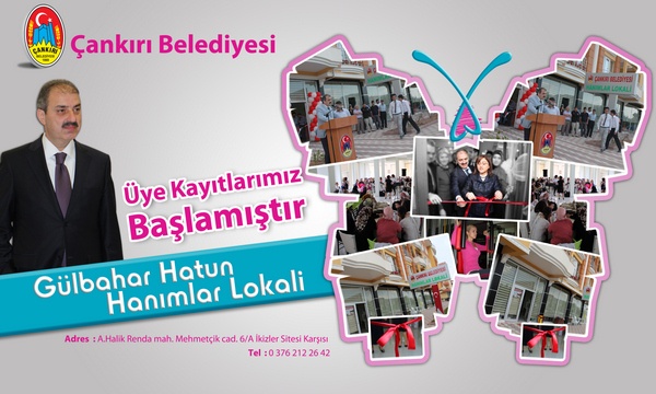 Çankırı Belediyesi, Hanımlar Lokali’ne bir yenisini daha ekledi. Gülbahar Hanımlar Lokali ile 3. lokalini açan belediye, Çankırılı hanımlara yeni ve nezih bir ortam daha sunuyor. Abdülhalik Renda Mahallesi Mehmetçik Caddesi İkizler Sitesi karşısına kurulan Gülbahar Hanımlar Lokali, hanımlara özel kurslar ve aktivitelerle civar mahallelerde yaşayan hanımların ihtiyaçlarına cevap vermeyi amaçlıyor.