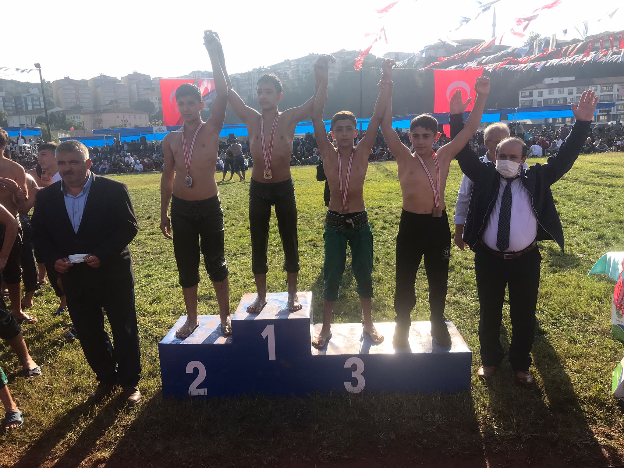 Başkan İsmail Hakkı Esen’in güreşçileri her boyu madalyalar ile şereflendirmeye devam ediyor. Belediyespor Kulübü güreşçileri, geçtiğimiz hafta sonunda Zonguldak Alaplı Geleneksel Yağlı Güreş müsabakalarını 3 madalya ile tamamladı. Recep Armağan Minik 1 Boy’da ikinci, Vural Aslan Küçük Orta Büyük Boy’da üçüncü, Abdülkadir Koçyiğit Teşvik Boy’da üçüncü oldu. Kulüp, Kocaeli’de düzenlenen Taşköprü Yağlı Güreş müsabakalarında Burak Özgen’in Deste Orta Boy’da elde ettiği üçüncülük ile geçtiğimiz hafta sonunu dört madalya ile tamamladı.