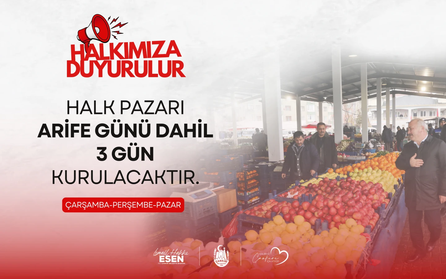 Halk Pazarı Arife Dahil Üç Gün Kurulacak