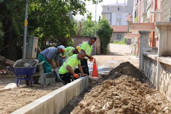 Karataş Mahallesi Hamamcıoğlu Sokak’ta altyapı çalışmalarına ait su, kanalizasyon, yağmurlama ve doğalgaz hatlarının tamamlanmasının ardından Belediye Fen İşleri Müdürlüğü ekiplerince yol dolgu çalışmaları gerçekleştirildi. Bölgede çift taraflı kaldırım çalışmalarına başlayan ekipler, 300 m’lik yolun her iki tarafında 1,5 metrelik kaldırım yapacak. Çalışmalar kapsamında; 1000 metrekare parke taşı ve 700 metre bordür kullanılacak. Kaldırım çalışmalarının tamamlanmasının ardından bölge sıcak asfalt ile buluşturulacak.