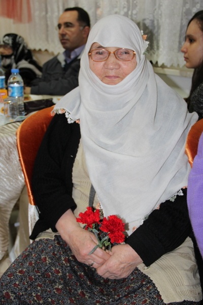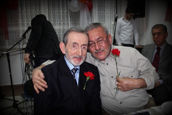 Ellerinde kırmızı karanfiller tutan huzurevi sakinlerinin okuduğu şiirler ve söylediği şarkılar ise geceye ayrı bir renk kattı.