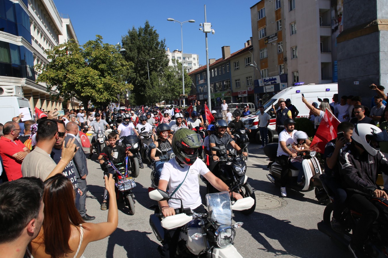 Her iki tura da eşlik eden Belediye Başkanı İsmail Hakkı Esen, hem pedala hem de gaza yüklendi. Şehir turuna katılan bisiklet ve motosikletseverler, Türk bayrakları ile geçiş yaptı.
