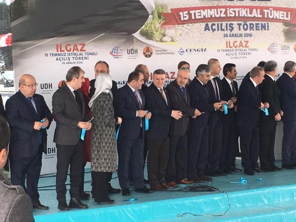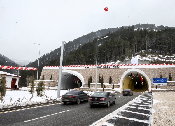 Türkiye'nin dev projeleri arasında sayılan ve kış aylarında sürücülerin zor anlar yaşamasına neden olan Ilgaz dağına inşa edilen "Ilgaz 15 Temmuz İstiklal Tüneli" törenle açıldı. İç Anadolu'yu Batı Karadeniz'e bağlayacak tünel için 2012'de vurulan ilk kazmanın ardından onlarca çalışan, yer altında yüzlerce metre yol kat ederek bin 875 metre yüksekliğindeki Ilgaz dağını adeta dize getirdi.