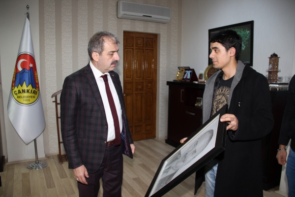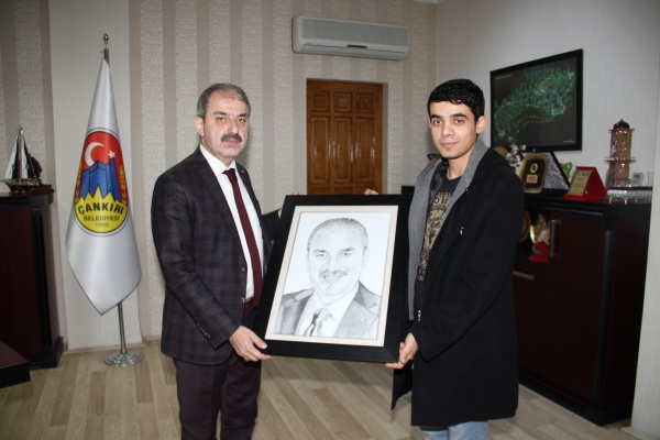 İşitme engelli Eray Karaca 3 Aralık Dünya Engelliler Günü için düzenlenen etkinlikte sergiye çıkan portresini Belediye makamında Başkan Dinç'e hediye etti. Güzel Sanatlar Lisesi mezunu olan Karaca'nın yaptığı karakalem çalışmasında Başkan Dinç'in portresi yer alıyor.