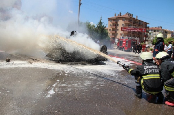 Teknolojik donanımlarını hızla geliştirmeye devam eden Çankırı İtfaiyesi, son olarak yangının yan binalara sıçramasını önleyen perdeleme sistemini uygulayarak ve araç yangınına köpükle müdahale ederek hem yeni sistemini denemiş oldu hem de ilçelerden gelen İtfaiye personellerine gelişmiş itfaiye teknolojileri hakkında uygulamalı olarak bilgi verdi.
