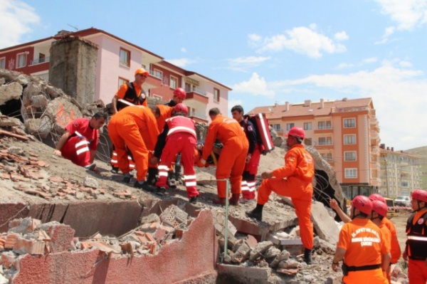 İtfaiye Müdürlüğü koordinesinde AFAD ve UMKE ekiplerinin de katılımıyla gerçekleştirilen tatbikatta, senaryo gereği 7,2 şiddetinde meydana gelen deprem sonrasında enkaza dönen bir bina altında kalan insanlara müdahale edildi.