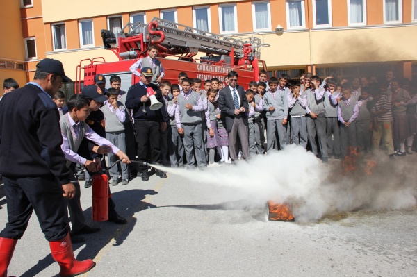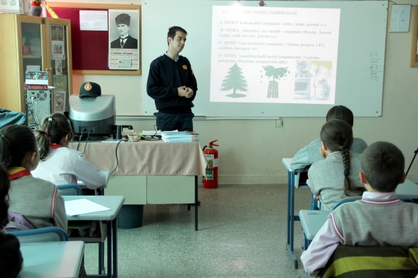 İlk olarak 29.09.2011 Perşembe günü Atatürk İlköğretim Okul’una giden İtfaiye Müdürümüz Ahmet Semerci komutasındaki itfaiye ekipleri, öncelikle bir sınıfta öğrencilere yangın, yangın çeşitleri ve bunlara nasıl, ne tür metotlarla müdahale edileceği konusunda slaytlı bir sunum gerçekleştirdi.