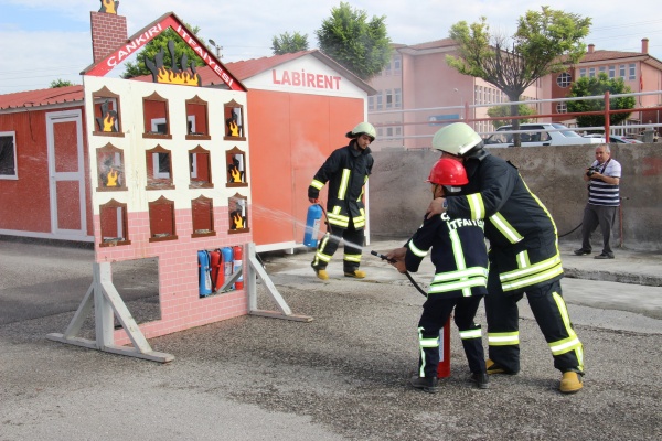 Törene katılan öğrenciler de temsili yangın söndürme çalışmalarına katılarak İtfaiyenin kuruluşunun 301. yıldönümü etkinliklerine destek verdi. Öğrencilere günün anısına itfaiye maskesi, yapboz ve top hediye edildi.