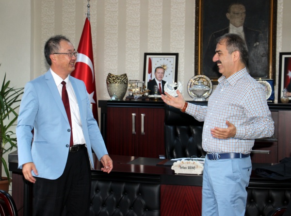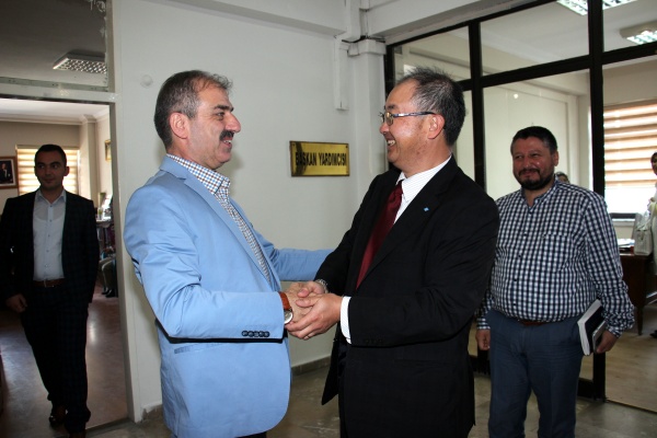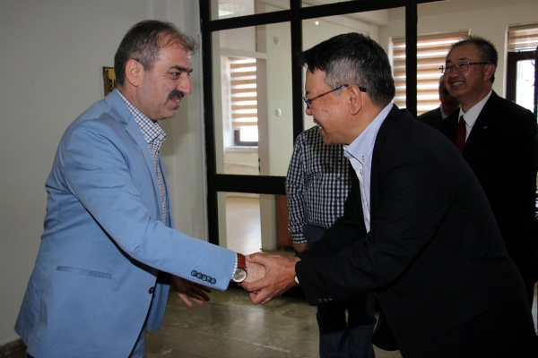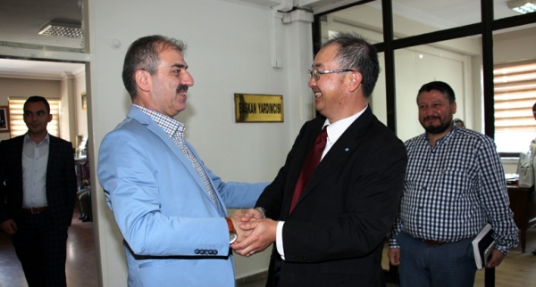 Yakınkent Organize Sanayi Bölgesi’nin en önemli yatırımı Japon Lastik Devi Sumitomo Rubber Industries şirketinin CEO’su Norifumi Fujimoto ve ekibi Başkan Dinç’i makamında ziyaret etti.