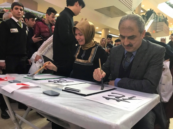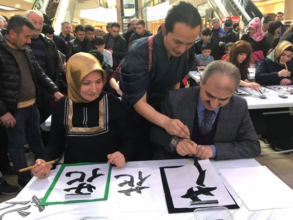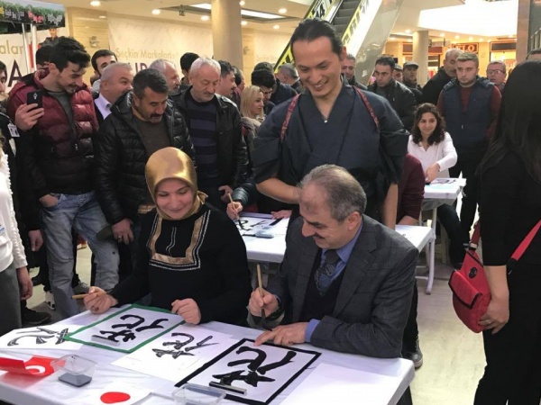 Sanatçının performansının ardından oluşturulan masalarda Japon Shodou Sanatı Çankırılılar’a uygulatıldı. İlk uygulamayı yapanlardan birisi olan Belediye Başkanı İrfan Dinç ve eşi Zeynep Perihan Dinç sınavı başarıyla geçti. Sumitomo CEO’su Fujimoto da vatandaşların atölye çalışmasına yardım etti.
