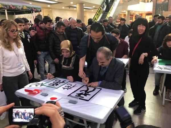 Çankırı Belediyesi ile Türk Japon Vakfı işbirliğiyle gerçekleşen etkinlikte bu kez Japonların en özel sanatları olan ve bizdeki kaligrafi sanatı ile benzeşen Shodou Sanatı performansı Çankırılılara sunuldu. Yunus AVM’de düzenlenen ve Çankırılıların büyük ilgi gösterdiği etkinliğin açılış konuşmasını gerçekleştiren Belediye Başkanı İrfan Dinç, Japon yatırımı bir istihdam, ekoomi yatırımı değil aynı zamanda Türk-Japon kültürel iş birliğinin de temelinin atılmasında şehrimiz için müstesna bir yatırımdır. Biz değişik etkinlikler ile Türk Japon iş birliğini Çankırı’da gerçekleştiriyoruz. Bu dayanışmamız daha çok genişleyerek her ülke için de güzel ve faydalı sonuçlar doğuracak. Hem yatırımlarımızın artması hem de iş birliğimizin pekişmesi noktasında üzerimize düşeni yaparken Japon dostlarımzdan da aynı özveri ve karşılığı alıyoruz. Bu durumdan çok mutluyuz. İnşallah, birliğimiz ve beraberliğimiz daim olur.” şeklinde konuştu.