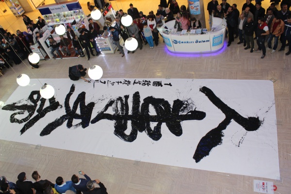 Japon Shodou Sanatçısı Mohri Suzuki’nin AVM meydanında gerçekleştirdiği performansı Çankırılılar cep telefonları ile kaydederken sanatçının tevekkül kelimesine karşılık gelen Japonca olarak “Sen elinden geleni yap” ifadesini zemine uygulayıp yanına da Japonca olarak Çankırı yazdı.