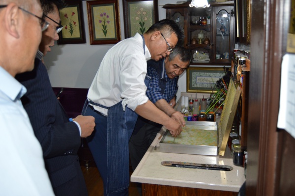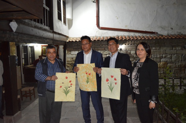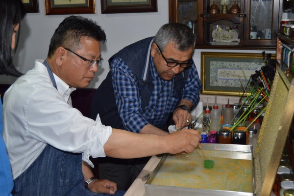 İftar yemeğinin bir günlük ev sahipleri,  iftar sonrasında Çivitçioğlu Medresesi’nde sohbet ederek ebru sanatı yapımına da katıldı.