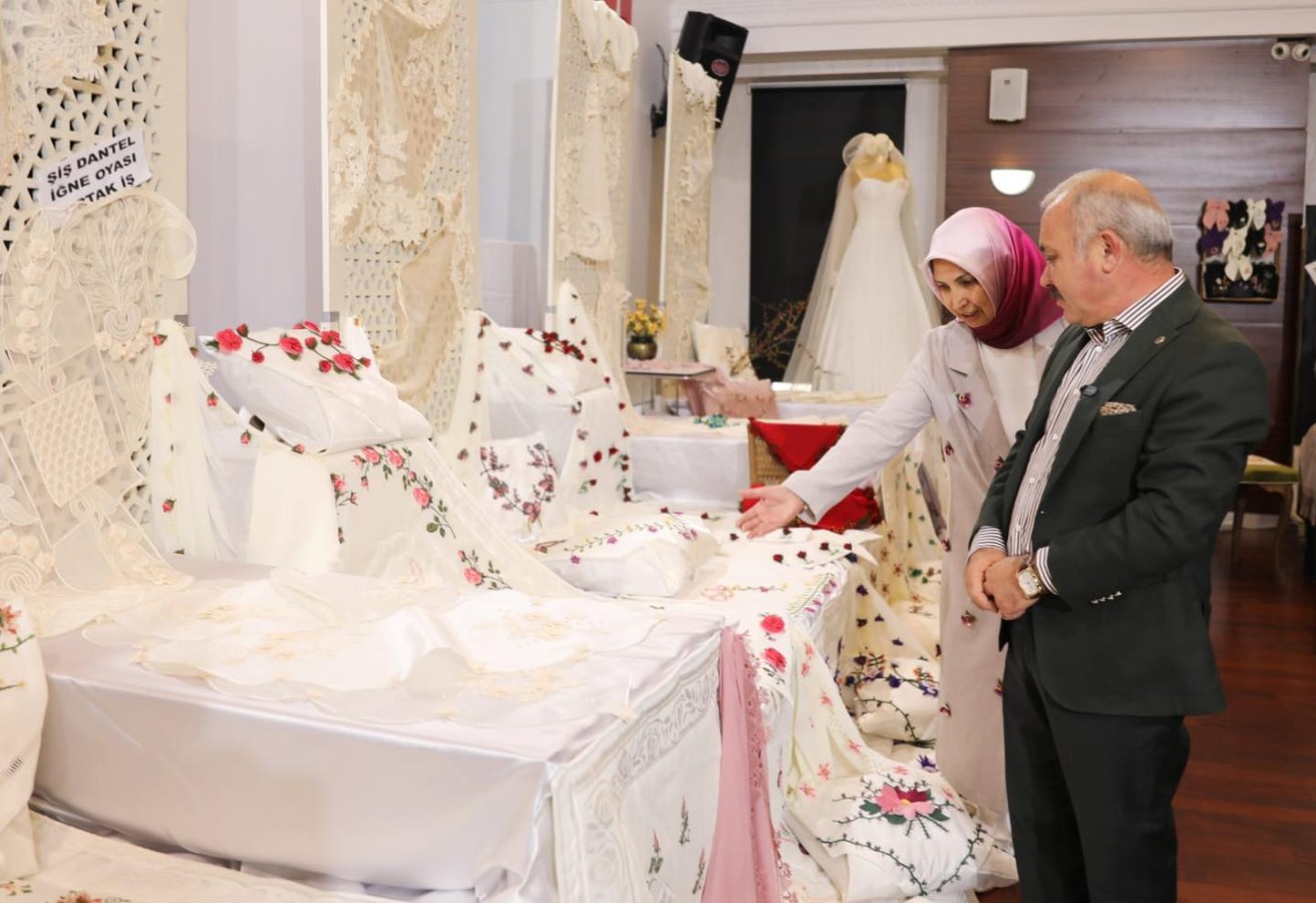 1200 kursiyerin sekiz aylık süreçte ortaya çıkardığı ürünlerden oluşan “Kadın Emeği” sergisi, 29 Mayıs Çarşamba günü saat 19.00’a kadar Astarlızade Sabiha Anne Kadın Eğitim Kültür Merkezinde ziyaretçilere açık olacak.