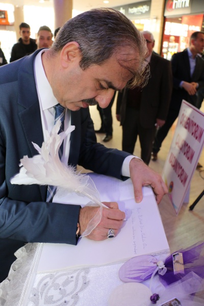 Konuşmalarının ardından sergilenen ürünleri inceleyen Başkan Dinç, üretime katkı sağlayan hanımlarla da sohbet etti.