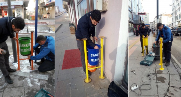 Belediye Temizlik İşleri Müdürlüğü, kaldırımlarda ihtiyaç duyulan noktalara sallanan yeni çöp kovaları monte etti. Renkli, şık ve temiz görünümlü portatif çöp kovaları, özellikle şehir merkezinde gezerken elindeki ufak çaplı çöpü atmak isteyen vatandaşlara da kolaylık sağlayacak. Şehrin standartlarını daha modernize etmek için ne gerekiyorsa yaptıklarını belirten Belediye Başkanı İrfan Dinç, göreve geldiği günden beri çevreyi koruyan ve çevreye karşı halkın bilincini arttıran bir anlayış ile çalıştıklarını kaydetti. Dinç, Çankırı halkının önümüzdeki günlerde şehir merkezi ve yeni yerleşim alanlarında daha dekoratif çöp kutularını göreceğini de belirtti.