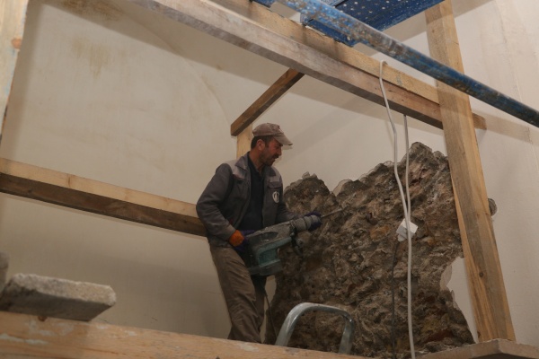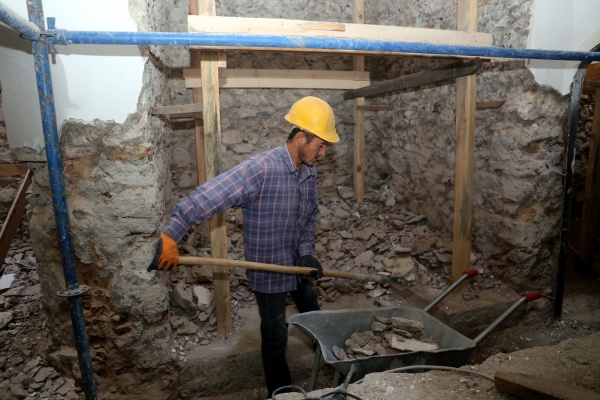 Belediye Fen İşleri Müdürlüğüne bağlı ekipler, Tabakhane Mahallesi’nde bulunan tarihi Karataş Hamamı’nın restorasyon çalışmalarını sürdürüyor. Çalışmalar kapsamında; tarihi hamamın eskiyen kubbe ve çatı aksamları değiştirilerek yenilendi. Anıtlar Yüksek Kurulundan onaylı proje doğrultusunda Tuz Rehabilitasyon Merkezine dönüştürülecek tarihi hamamın iç kısmında bulunan mermer ve diğer kaplama malzemeleri de söküldü. Sökülen mermer kaplamasının yerine duvar ve yer kaplamalarında ahşap ve tuz blokları kullanılacak. Ekipler, iç ve dış sıva imalatlarını da yürütüyor.