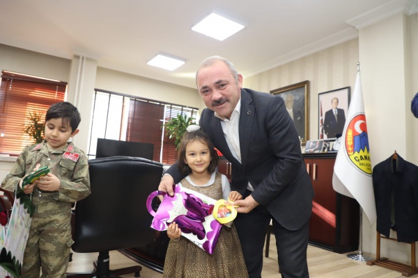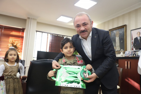 Belediye Başkanı İsmail Hakkı Esen, esnaf ziyaretleri, mahalle buluşmaları ve halk günü etkinliklerinde vatandaşlar ile buluşmaya devam ediyor. Her Cuma günü vatandaşları makamında ağırlayan Esen, hemşehrilerinin istek ve önerilerini dinliyor. Bu hafta, Halk Günü’nün sömestri tatiline denk gelmesinden dolayı makamın en renkli yüzleri çocuklar oldu. Karnesini alan çocuklar, mutluluklarını Başkan Esen ile paylaşırken Fatih Sultan Mehmet Çocuk Akademisinde okul öncesi atölyelerine katılan minikler de Başkan amcalarını ziyaret etti. Fen, Matematik, İngilizce, Robot, Resim, Müzik ve Kuran-ı Kerim atölyelerine katılan 4-6 yaş grubu miniklere başarı karnelerini Başkan Esen verdi. Ziyarete gelen çocuklar ile bol bol sohbet eden Esen, çocuklara karne hediyesi de takdim etti.